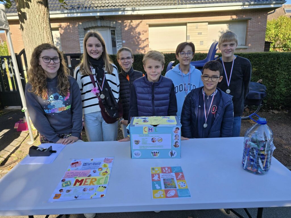 Bravo aux enfants du CME qui ont récolté13.2 kg de stylos usagés au profit des Clowns de l’Espoir ce matin lors de la braderie de Pont-à-Marcq. Précédent Suivant